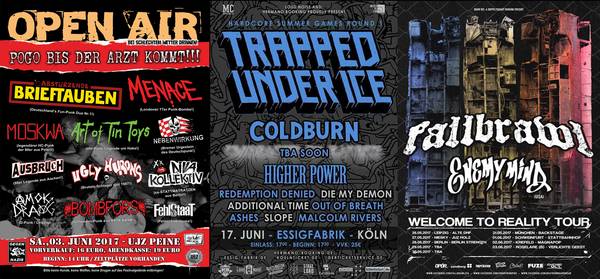 Live sind auch wieder einige Leckerbissen unterwegs. TRAPPED UNDER ICE touren mit COLDBURN und HIGH POWER sowie FALLBRAWL düsen mit ENEMY MIND. RISK IT zurzeit ebenfalls noch durch die Republik. Demnext kommen STRAY FROM THE PATH auf dicke Europatour. DEEZ NUTS mit ihrem neuen Album beehren uns natürlich auch. COMBACK KID lassen sich auch nicht lumpen und haben unter anderem EVERY TIME I DIE und LIFESICK im Schlepptau. Und wer es richtig deftig mag, INTEGRITY lassen sich auch mal wieder blicken.