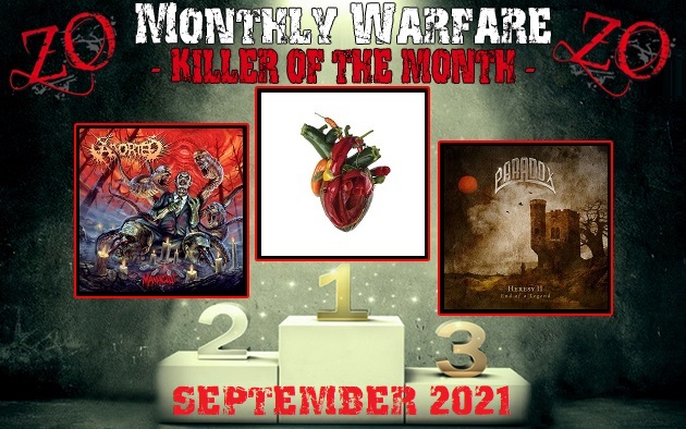 Dit is ja mal nen Ding! Noch nie war sich unsere Redaktion so einig bei der Wahl zur CD des Monats! Die Institution Carcass hat demnach sauber abgeliefert und den Großteil unserer Kollegen mit ins Boot geholt. Darauf erstmal nen Gürkchen! Aber auch Platz 2 für Aborted spricht für eine gepflegte todesbleiernde Schlagseite, wo hingegen der dritte Platz für die teutonische Thrash Legende Paradox von extrem gutem Geschmack für hervorragende Musik zeugt. Und sonst so?