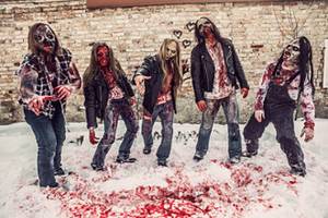 Let’s become V.I.P.‘s…so beginnt die recht humorvolle Einleitung zur Gründungsgeschichte von Zombie Inc. Die Österreicher, die sich dem traditionellen Todesstahl verschrieben haben, turnen nun seit 2010 mehr als erfolgreich durch den Untergrund und haben neben Hauptsongwriter Wolfgang Rothbauer, der mit In slumber und Thirdmoon bereits auf sehr gute Bands zurückblicken kann und Frontmann Martin Schirenc, den Alteingesessene als Vorturner der Kultband Pungent stench bestens in Erinnerung haben dürften, zwei überaus erfolgreiche Aushängeschilder der alpenländischen Death Metal Szene in ihren Reihen. Dadurch allerdings von einem „Allstar“ Projekt zu sprechen entbehrt jeglicher Grundlage, denn dafür ist der Fünfer viel zu eigenständig, was bereits das allerorten gelobte Debüt „A dreadful decease“ eindrucksvoll untermauerte. Nun sind die Jungs zurück, hauen mit „Homo gusticus“ mal locker aus der Hüfte ein schweinegeiles Album raus, welches just an diesem Abend, an dem die Band ihre Visitenkarte im K17 abgeben sollten, auch noch Premiere hat. Viele Gründe, um der untoten Horde mal gehörig auf die morschen Zähne zu fühlen…