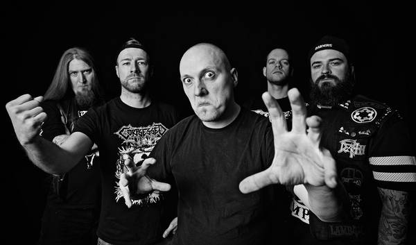 Diese Ehrfurcht schlägt sich ja auch in Euren Coverversionen nieder, wobei auf "Corrosive" ja Entombed mit "Supposed to rot" ein Denkmal errichtet, auf dem neuen Album hingegen eine brillante Version von Bolt Throwers "Powder burns" eingeprügelt wurde, die mich doch etwas verwunderte. Man sagt Euch ja, vollkommen berechtigt, die Nähe zum skandinavischen Todesblei nach und doch zog es Euch diesmal auf die Insel. Für mich als ewiger BT Fan natürlich eine tolle Geschichte, doch warum diesmal nichts von Grave, Dismember oder Nihilist?