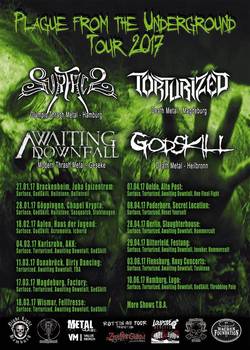 Das wäre sehr geil, wenn uns 2018 das eine oder andere Festival buchen sollte, denn da wollen wir "Omnivore" weiter präsentieren und werden definitiv auch neue Songs am Start haben, denn in der zweiten Jahreshälfte 2017 geht's wieder intensiver ans Songwriting - doch das ist Zukunftgeplänkel. Die "Plague From The Undground"-Tour-Idee entstand Mitte 2016 mit den Jungs von Surface aus Hamburg und den Kollegen von Godskill und Awaiting Downfall. Zusammen haben wir in der gesamten Republik Clubs und Veranstalter angeschrieben und unser Package beworben - herausgekommen ist dann die Tour, die im Januar startete und im Juni endet. Nicht jede Band wird jede Show mitspielen, da alle werktätig sind und mitunter Familie haben. Letztendlich haben wir alles selbstständig organisiert. wir mit Torturized steigen jetzt am 04.03. in Karlsruhe in die Tour mit ein. wir freuen uns schon riesig.