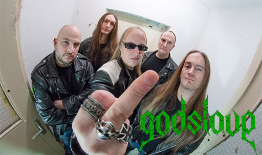 Ach, das ist gar nicht so tiefgründig, wie man meint, hehe! GODSLAVE ist ursprünglich aus einer anderen Band namens Slavery hervorgegangen, in der Thommy und Bernie zuvor gespielt hatten. Dieser Slave-Begriff klingt halt ganz gut, daher sollte das irgendwie beibehalten werden. Und so kam dann die Idee, dass man selbst ja immer irgendwie Sklave eines Gottes ist. Wobei dieser „Gott“ sinnbildlich für alles Mögliche stehen kann, dem man sich unterordnet: Geld, Job, andere Menschen...was auch immer. Und so war der Bandname geboren.