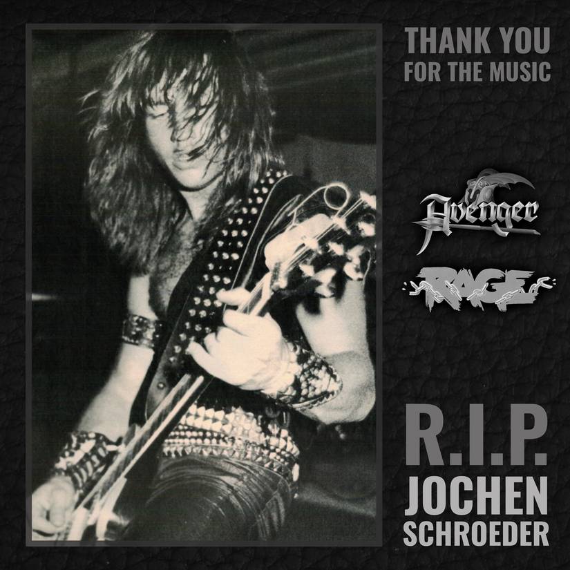 Mit tiefer Bestürzung mussten wir erfahren, dass unser Avenger/Rage Mitbegründer und Gitarrist Jochen Schroeder bereits vor einiger Zeit unter tragischen Umständen ums Leben gekommen ist. Jochen war von der Gründung 1982 bis zum Jahr 1987 Gitarrist und Co-Komponist von Avenger/Rage und gerade in den Anfangstagen ein wichtiger Motor der Band. Er trug mit seinem Spiel und seinen Ideen entscheidend zur Stilbildung der Band bei. Jochen hatte sich bereits seit langem aus dem Musikgeschäft verabschiedet und sich persönlich immer mehr zurückgezogen. Über die genauen Umstände seines Todes liegen uns zum jetzigen Zeitpunkt keine Informationen vor. Wir trauern um den Verlust eines großartigen Weggefährten, der viel zu früh unsere Welt verlassen hat.