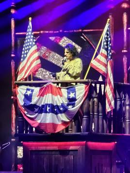 Der schwarze Vorhang wurde runtergelassen und es hieß nun warten auf Mr. Alice Cooper. Und dann ging es endlich los! Zwei in schwarze Kutten gekleidete Gestalten liefen Handglocken schwenkend den Bühnenrand entlang. Währenddessen wurde ein Zeitungsbanner des The German Chronicle heruntergelassen. Coole Idee! Hinter dem Banner tauchte dann die Silhouette von Alice Cooper auf und der große Vorhang viel. Das Bühnenbild war einfach der Hammer. Links und Rechts große Treppen. Das Ganze sah irgendwie wie ein alter Gerichtssaal oder so aus. Hinten große Videoleinwände in Form von alten Fenstern. Einfach großartig. Sowie der Sound und die bockstarke Songauswahl quer durch alle Schaffensphasen des Meisters des Schock Rock.