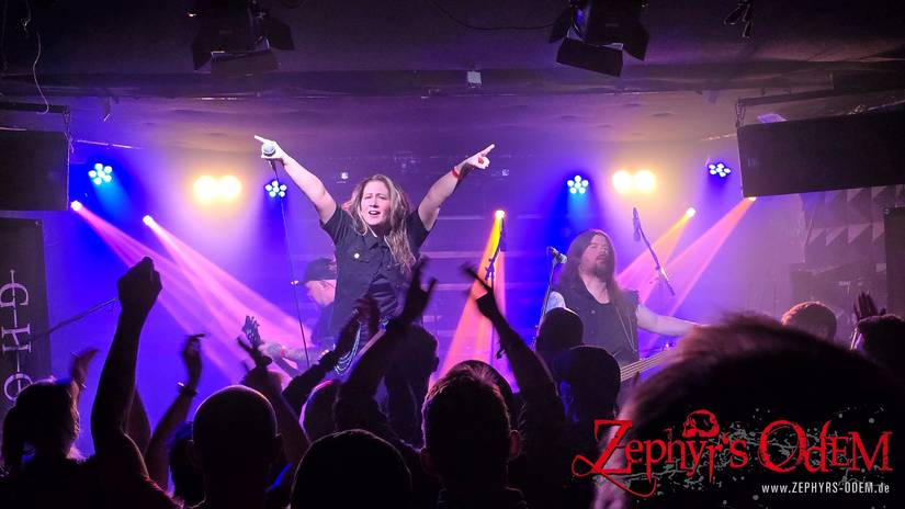 Pünktlich um 19:30 Uhr ritten wir ein und Ghosther intonierten bereits ihren ersten Song und meine Prognose, dass Sabrina hier mächtig die Gehwarzen schwingen würde, bewahrheitete sich von der ersten Sekunde an. Kein Wunder, denn die Truppe aus dem Rheinland (oder Rausland, wie Gitarrist Andy zwischendurch einwarf) machte mächtig Tange und begeisterte den propppevollen Saal mit jedem Song.