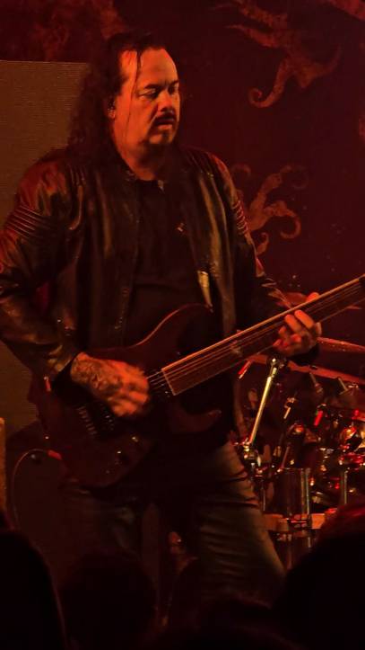 Nun aber sollte es mit dem Headliner weitergehen und ja, wer mich kennt weiß, wie oft ich in der Vergangenheit über den vertonten Weltschmerz von Evergrey gelästert, teilweise auch fast bösartig hergezogen habe. Das hat sich seit nunmehr fast 5 Jahren vollständig geändert und ich bin zu einem beinharten Fan von Tom Englund und seinen Mannen mutiert, die ich an diesem Abend erstmal mit ihrem neuen Schlagwerker Simen Sandnes sehen sollte. Um es vorwegzunehmen: Der Mann hat ex-Drummer Jonas Ekdahl, mit dem ich ja in diesem Jahr ein ausführliches Interview führen durfte, gänzlich in den Schatten gestellt und förmlich an die Wand gespielt. Witzig war vor dem Gig zu beobachten, wie sich die Stagecrew auf Kisten stellen musste, um das Mikro für den Riesen Englund korrekt herzurichten.