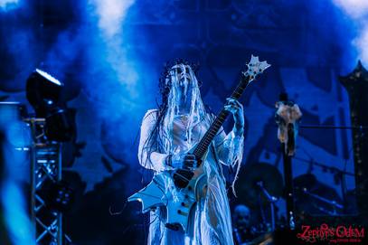 Schon als Onielar mit ihrem blutverschmierten Gesicht und dem starren Blick auf die Bühne trat, spürte ich, wie mir ein kalter Schauer über den Rücken lief. Ihre Performance ist eine Mischung aus kontrolliertem Wahnsinn und furchteinflößender Präzision, die mich mehr als einmal überlegen ließ, ob es wirklich eine gute Idee war, so nah an der Bühne zu stehen. Die Gitarre in ihrer Hand wirkt wie eine Waffe, und jeder Schrei, den sie in das Mikrofon presst, klingt, als würde er direkt aus einer anderen, düsteren Dimension kommen.