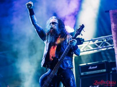 Die Niederländer hinterließen einen soliden Eindruck, auch wenn es einige Schwächen gab. Frontmann Aad Kloosterwaard, wie immer energiegeladen, wurde von seiner Frau am Bass begleitet, was dem Auftritt eine besondere Optik verlieh. Die Setlist enthielt Klassiker wie "The Science of Prophecy," "Leviathan," und "Transylvania (City of the Damned)," die das Publikum ordentlich in Bewegung brachten. Dennoch fühlte sich der Sound an manchen Stellen etwas dünn an, vor allem in den Gitarrenpassagen. Eine zweite Klampfe hätte hier sicher geholfen, um den Songs mehr Wucht zu verleihen und den typischen Sinister-Wall-of-Sound zu erzeugen. Trotz dieser kleinen Schwäche war die Performance vollkommen ok, und das Publikum zeigte sich begeistert, vor allem bei den älteren Stücken wie dem Rausschmeißer „The Carnage ending“. Wann kommt endlich eine neue Scheibe? [Olaf].