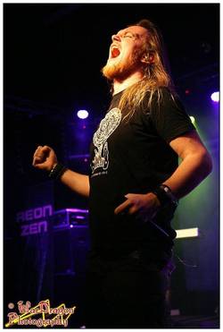 Mit Aeon of Horus ist dann die erste Progressive Death Metal Band am Start. Da diese Band in alphabetischer Reihenfolge natürlich ganz vorne aufgelistet war, hatte ich mir hier schon ein paar Songs auf You Tube gegeben. Progressive Death oder Technical Death wie er sein sollte, getragen von vielen hektischen Breaks und Taktwechseln, einer verdammt groovenden Rhythmusfraktion und einem Mordsgrowler angereichert von atmosphärischen Keyboardflächen. Live fällt als erstes eines auf, die optische Präsenz von Basser Adam und Growler Carlo. Während erster vor allem durch sein sympathisches Dauergrinsen besticht und mit seinen Pausbäckchen einfach knuffig daherkommt, wundert man sich bei zweitem ob das wirklich die adäquate Visualisierung zu dem Gehörten ist. Ein Mann mit langen rotgelockten Haaren und Brille den man durchaus als IT-Spezalist vermuten könnte weil er etwas nerdy wirkt, bläst einem mit derart druckvollem Gegrowle in die Sitzlehnen, dass man nur den Hut ziehen kann.