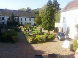 Nach einem kurzen liebevollen Hallo ließen wir die Herren aber auch in Frieden, da sie von ihrer langen Tour gezeichnet waren und wir auch selber nicht wussten was uns erwartet. Das Kastell de Berckt selbst ist ein Historisches Schloss auf dem gleichnamigen Landgut mit Park, Bauernhof, Kneipen und allem was dazu gehört. Dieser malerische Ort sollte also unser Domizil für die kommenden Nächte sein und nachdem wir uns vom internen Café und dem Innenhof überzeugt hatten, bezogen wir dann auch unser Zimmer. Dieses war etwas puristisch und hatte neben einem Stockbett, einem Doppelbett , 2 Regalbrettern und einem Waschbecken mit Spiegel nichts zu bieten, ganz im Gegenteil zum Rest des Anwesens. Etwas Pech schienen wir mit dem großen Ansturm der Mücken zu haben, die entweder durch die Jahreszeit oder durch den unweit entfernten Burggraben zahlreich herumschwirrten und uns erst einmal zu einer Säuberungsaktion veranlassten bei der dann auch noch die Sicherung rausgeflogen ist.