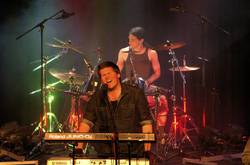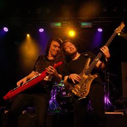 30 Minuten später betreten Prospekt die Bühne und bereichern das Billing um eine bisher nicht gehörte Facette. „A desolate Kingdom“ ist pompös, treibend, groovig und vor allem doublebasslastig, Sänger und Keyboarder Richard Marshall thront mit seiner hohen und sehr hellen Stimme über allem während er mit seinem Keyboard ein paar Flächen einwirft und den Groove dem Rest überlässt. Der rotgelockte Bassist Phil ist in Dauerbewegung und zwischen Bangen und Posieren eigentlich kaum vor die Linse zu bekommen und Gitarrist Lee kommt konzentriert daher, denn er ist der Mann für die Soli, und was für welche. Ein Shredderer vom Herren, der alles drauf hat was man von Gitarrenvirtuosen heutzutage erwartet. Fans von Symphony X kommen mit der instrumentellen Seite von Prospekt auf jeden Fall auf ihre Kosten, nur hat ein Michael Romeo einfach noch bessere Melodien auf Lager und Russell Allen kann seine Stimme stärker variieren. Die Briten jedoch sind was das Songwriting angeht abgeklärt, vielleicht zu abgeklärt für manche Anwesenden. „Dissident Priest“ und „Eternal Memories“ geben weiter auf die 12, danach kommt ein Longtrack mit schönen Tempowechseln und ruhigen Passagen und auch eine Ballade darf nicht fehlen, bevor man wieder zur Doublebass greift. Doch trotz der klassischen Elemente des traditionellen Progressive Metal kommt durch die charismatische aber auch erdrückende Stimme von Richard hier und da etwas Monotonie auf. Zu präsent sind seine Höhen und zu dominant die Harmonien die er der Musik auferlegt. Nach einer weiteren Offenbarung seines Könnens in Form eines Gitarrensolos, bittet Mr. Luland zum Mitbangen beim Midtempogroovemonster „Shroud“, bevor mit „Shutter Asylum“ der Gig beendet wird. Auch Prospekt werden mit ausreichend Applaus verabschiedet und den haben sie sich auch redlich verdient. Hier und da würde man sich noch ein paar Überraschungen wünschen, ein bisschen mehr Variation in Stimme und Harmonien und ein wenig mehr Emotion, was man Prospekt aber zu keinem Fall absprechen kann ist Professionalität. Die Grooves saßen, die Highspeedsoli waren nahezu perfekt und auch die Stimme war kraftvoll und sauber.