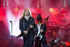 Überhaupt war das Publikum mehr als reserviert, bedachte zwar jeden Song mit Applaus, aber eine euphorische Stimmung wie bei anderen Gigs der Tour, wollte einfach nicht aufkommen. Vielmehr waren wohl einige mehr an der Show an sich und weniger an der Musik interessiert. Ärgerlich, denn gerade ein Übersong wie „Believe“, bei dem allerdings Sänger Robin Bornemann nicht ganz an einen John Oliva heranreichte, MUSS einfach Stimmung aufkommen. Dennoch gingen zumindest wir beide gut mit und freuten uns über „All that I bleed“, „The hourglass“, bei dem Andrew Ross mehr als glänzte oder „After the fall“. Der einzige gesangstechnische Ausfall war in meinen Augen Rob Evan, der mit seiner Stimme zwar dem Musicalcharakter von TSO seinen Stempel verpasst, aber mit Rock im Allgemeinen nicht viel zu tun hat. Schön waren auch die Anmoderationen von Bryan Hicks, das Orchester mit der hinreißenden Violinistin Asha Mevlana oder der Keyboarderin Mee Eun Kim. Natürlich nicht zu vergessen Jeff Plate, Johnny Lee Midleton, Chris Caffery und Al Pitrelli, die mächtig Druck machten und bewiesen, warum ich Savatge immer liebte und verehrte.
