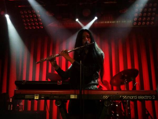 Inzwischen war der Privatclub auch so voll geworden, dass es geradeso noch nicht unangenehm voll war und dass man nicht mehr ohne weiteres zur Bar durchkam. Die Umbaupause war kurz, das Keyboard und die Querflöte von Frontsirene Alia O’Brien wurden bereitgelegt und dann ging es auch schon los.
