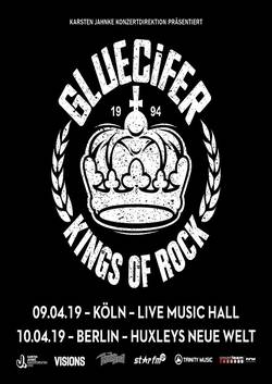 Eigentlich konnte man nach so einem schnellen Abgang davon ausgehen, dass es die Jungs eventuell nach ein paar Jahren mal wieder auf die Bühne zurückziehen würde. Bis auf Gitarrist Captain Poon, der mit seiner Band Bloodlights umgehend weiter machte im Showbiz, war von den anderen vier Mitstreitern nur wenig, bis gar nichts zu hören. Als zu Ende 2017 die Info von einer Wiedervereinigung die Kunde machte, liefen die Telefondrähte bei Gluecifer wieder heiß. Es wurden erste Gigs geplant und diverse Festivals gespielt. Man hatte wieder Feuer gefangen und so hieß es nun endlich am 10.04.2019 „The Kings Of Rock are Back“ in Berlin! Bis auf den Neueinstieg von Peter Larsson, waren die zuletzt aktiven und üblichen Verdächtigen Biff Malibu, Captain Poon, Raldo Useless und Danny Young wieder am Start. Neben Berlin bespielte man am Tag zuvor noch Köln im hiesigen Lande.