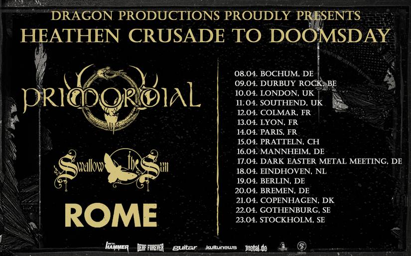 Einer davon, den ich auch unbedingt hören wollte, war „Celine in Jerusalem“, der zu meiner Freude bereits der zweite Track auf der Setlist war. Wahnsinn, welche Stimmung ROME zu zweit(!) erzeugen. Jeder gespielte Song ist voll von Melancholie und Gefühl. Beim vorletzten Track „Ächtung, Baby“ betrat dann der Sänger von PRIMORDIAL, ALAN AVERILL das erste Mal die Bühne und performte diesen Song gemeinsam mit ROME. Eine richtig fette Kombi, die auf der Scheibe schon geil klingt aber Live noch geiler rübergebracht wurde.