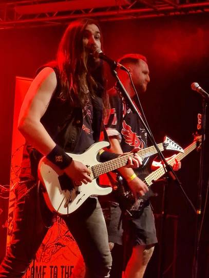 Man merkt den Lokalmatadoren von Exa an, dass sie immer weiter an sich arbeiten, denn die Performance an diesem Abend war weitaus reifer als beim letzten Metal Gods Open Air 2021. Soll aber nicht heißen, dass die Jungs um Frontman Tom in irgendeiner gearteten Weise schlecht wären, im Gegenteil! Sie werden einfach besser und wenn das neue Album auch nur ansatzweise die Power einfängt, die das Quartett auf der Bühne entfacht, wird das Teil ein Kracher.