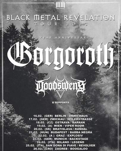 Zum Start des neuen Jahres legen wir natürlich nochmals mit Tourdaten nach, knackig auf die Zwölf. Damit ihr gleich in die Vollen gehen könnt. Mit dabei sind wieder einige Geheimtipps, die man sich nicht entgehen lassen sollte. So sind die italienischen Doomer MESSA wieder unterwegs. Die Rebellion Festival Tour macht auch wieder Ballett für die Hardcore Punk Fraktion: mit MADBALL, H2O, THE TAKE und DRAIN uvm. Auch wird es mit LEFT TO DIE eine Death-Tribute-Tour geben, erstmalig in Europa. Und für die Black Metal Kultisten, sind mit GORGOROTH, CORPUS CHRISTII oder ANCIENT einige Kultacts dabei satanische Formeln zu murmeln. Viel Spass beim stöbern.