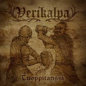 Die Krux bei VERIKALPA ist weniger, dass sie zu spät kommen, sondern dass ihre Musik zu dünn ist. Die Gitarren sind nicht präsent und in die Melodieführung eingebunden, sondern nur das Futter. Den leeren Raum vermag aber das Keyboard nicht zu füllen. Richtig gelesen: Keyboard, keine echten Folk-Instrumente, auch wenn es fast durchgängig nach Quetschkommode klingt, weil der Knopf zum Sound verstellen wahrscheinlich unterm Bierdeckel versteckt war. Die Melodien sind nett und fidel, transportieren aber keine Emotionen oder bauen Atmosphäre auf. Der Gesang, das übliche heisere Growlen der Vorbilder, bleibt ohne Ausdruck und Wiedererkennungswert, außer bei einer ganz kurzen Joik-Passage (man muss aber auch wirklich jedes Finnland-Klischee mitnehmen). Das lyrische Konzept „wir feiern und sind alle betrunken“ trägt halt auch nicht sehr weit. Der Albumtitel „Tuoppitanssi“ klingt nicht von ungefähr wie „Töppe-Tanz“, offiziell wird es mit Pint Dance übersetzt. Auf dem Cover sieht man den Ritter und den Troll, die beim Debütalbum vor 2 Jahren noch beim Armdrücken in der Schänke saßen, wie sie sich nunmehr die Humpen um die Ohren hauen, vielleicht auch tanzen. Ob sie dafür überhaupt Musik brauchen und welchen Anspruch sie an diese stellen, ist nicht überliefert.