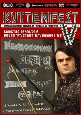 Metal as fuck! Besser kann man die fünfte Auflage des Kuttenfest nicht umschreiben und was die Mädels und Jungs vom Skullcrusher in Dresden wieder auf die Beine gestellt haben, ist lobenswert. Hier wird Metal gelebt, geatmet, gepinkelt...und vor allem zelebriert. Lest einfach meinen (Olaf) Bericht und taucht ein in die Welt der kuttentagenden, biertrinkenden und spaßhebenden Liebhaber gitarrenorientierter Unterhaltungsmucke...