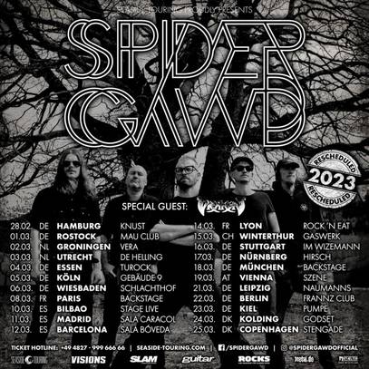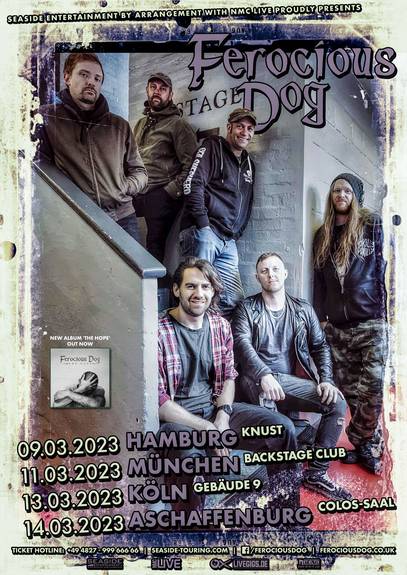 Seaside Entertainment haben uns von Ihren Zöglingen aktuelle Tourdaten zukommen lassen. Auch einige Termine die noch im März relativ zeitnah stattfinden. Wie die aus Nottingham stammenden Ferocious Dog (Folk Rock Reggae), die sehr eindrucksvollen Hard Rock/Heavies Spider Gawd aus Trondheim. Wobei letztere bereits heute Abend in Wiesbaden ihre Tour fortsetzen. Aber auch die legendäre Tarja ist live zu bestaunen. Vorfreude darf man hingegen auch auf das Biohazard Konzert im Original Line Up in Form bringen.