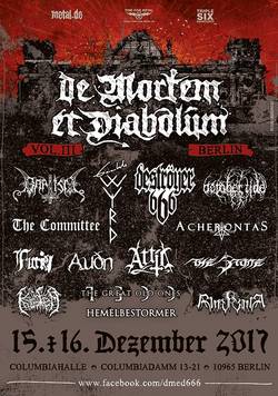 Zum dritten Mal geht das DE MORTEM ET DIABOLUM, das tiefgeschwärzte Indoorfestival in Berlin, an den Start. Wie auch in den letzten beiden Jahren wird an einem Freitag sowie einem Samstag eine Schar williger Fans die Hauptstadt heimsuchen um sich einer dunklen und doch ebenso abwechslungsreichen Darbietung finstrer Kost hinzugeben. Wo sich in den vergangenen Jahren besonders schmackhafte Perlen des Untergrunds wie MG?A, BÖLZER und BATUSHKA die Ehre gaben, werden an diesen zwei Tagen Bands wie GAAHLS WYRD, THE COMMITTEE und DESTRÖYER 666 für offene Münder und wohliges Grinsen sorgen. Und da bereits das Wort "Abwechslung" fiel - diese bekamen die Zuschauer mal in doomiger Manier a la OCTOBER TIDE , post-metallisch wie bei HEMELBESTORMER oder als krassen Kontrast in Form der Düster Heavy Metal Formation ATTIC geboten. Schaaki berichtet...