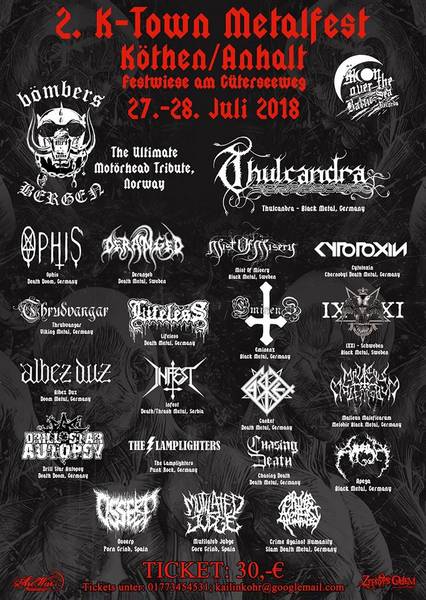 Was lange währt…Erst verabschiedet sich die Festplatte, dann ist die Cloud im Arsch und zu guter Letzt,,,ach…was soll’s, der Bericht von der zweiten Auflage des K-Town Metalfest in Köthen stand anfangs unter keinem guten Stern, wie auch unsere Anreise am ersten Tag, denn in der Nähe der von uns zu befahrenden A9 stand ein ganzer Wald in Flammen, so dass wir gezwungen waren, uns die Dörfer in der näheren Umgebung vom Süden Berlins etwas näher zu erkunden, was natürlich den Plan, rechtzeitig zur ersten Band auf dem Gelände zu erscheinen, unterminierte. Hier berichtet Olaf ausführlich