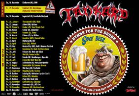 Auch im neuen Jahr gibt`s wieder einige wichtige Trinktermine mit TANKARD zu absolvieren, ihr solltet euch daher für das ein oder andere Gelage ordentlich die Wampe vollhauen, damit der leckere Suff auf einen angemessenen Grund trifft! Kleiner Tipp vom Trinkspecht: verzichtet auf grüne gesunde Pampe, denn dann geht sie nicht an eure Lampe!