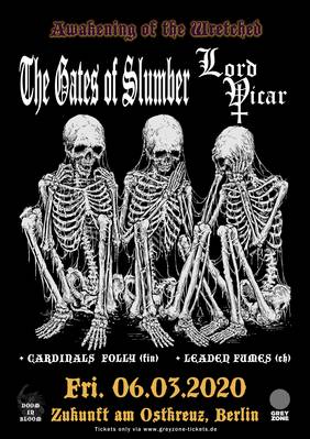 Die legendären Doom Bangers von The Gates Of Slumber aus Indiana kehren alsbald diese Woche für einige Dates nach Deutschland zurück, mit einem speziellen „Awakening“ -Set, ihres 2004 erschienen Debuts! Dafür verlosen wir 2x2 Freikarten, die uns vom Veranstalter Greyzone zur Verfügung gestellt worden. Schickt uns einfach eine E-Mail im Betreff GATES OF SLUMBER und am Freitag Mittag losen wir aus.