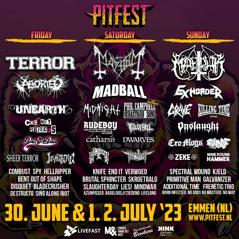Vom 30.Juni bis 2.Juli gibt es auf dem niederländischen Pitfest wieder ordentlich Ramba Zamba. Jenes Festival was zweifelsohne immer mit einer prächtigen Mischung des Metal, Punk und Hardcore/Crossovers auf die Pauke haut. Das unvergleichbare und kultige Miteinander, ein Freudenfest für Krawallfetischisten und jene die es werden wollen, macht das Pitfest zweifelsohne aus. Auch aufgrund der relaxten und familiären Atmosphäre dackelt man da zu gern alljährlich wieder hin. Unweit der deutsch/niederländischen Grenze hat man ab diesem Jahr in Emmen (Provinz Drenthe) ein neues Domizil bezogen.