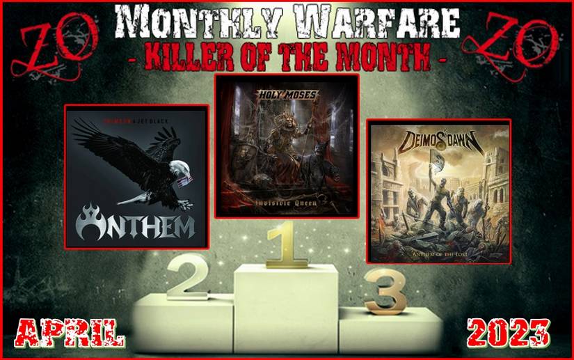 Völlig verdient und demokratisch gewählt haben Sabina und Holy Moses das Album des Monats eingefahren und bekommen somit ihren Abschied von unserer Redaktion ein wenig versüßt. Etwas überraschend auf dem zweiten Platz das bärenstarke Album der Japaner von Anthem, die uns ebenso begeisterten wie die Berliner Thrash Emporkömmlinge von Deimos‘ Dawn, bei denen sich Marc Grewe in einer anderen musikalischen Ausrichtung auslebt und das mehr als bemerkenswert.