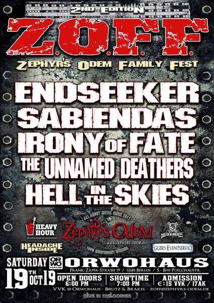 Leider musste Jano und seine Xicution ihren diesjährigen Gig bei uns absagen und auf 2020 verschieben, doch wir waren natürlich nicht untätig und haben für bestmöglichen Ersatz gesorgt. Irony of fate nennt sich die hierzulande vielleicht noch etwas unbekanntere Truppe aus Bern, die mit ihrem stilsicheren Mix aus melodischen Todesblei und einer fetten Groovekante für Begeisterung sorgen wird. Dazu haben die Eidgenossen das Privileg, die erste Schweizer Band auf unserem Billing zu sein und haben mit Cveti Stojmenova eine Frontfrau in ihren Reihen zu haben, die einer Sabina Classen oder Britta Görtz locker den Rang ablaufen könnte. Zieht Euch das Quintett mal rein und freut Euch auf einen energiegeladenen Gig auf dem ZOFF 2019.