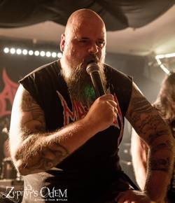 Mit eine der größten Überraschungen war, dass Gitarrist Ben erstmals live sein volles Haupthaar präsentierte und auf die obligatorische Kopfbedeckung verzichtete. Die Setlist beinhaltete eine schön ausgewogene Mischung aus alten und neuen Songs, wobei mir allerdings mein Lieblingssong „Worshipping the bloodthirsty“ immer noch am besten gefiel. Die Anwesenheit von Insidious Disease Frontmann Marc Grewe nährte bereits im Vorfeld bei mir die Hoffnung, dass das auf „Flesh hammer prophecy“ eingeträllerte Duett „Black star rising“ heute Anwendung finden würde, was allerdings leider nicht eintraf. Machte aber überhaupt gar nichts, denn Endseeker waren wie eigentlich immer bärenstark, Lenny zeichnete mit seinen witzigen Ansagen erneut das Bild eines Death Metal Fronters, der nicht nur böse ins Rund blicken muss, um Anerkennung zu erfahren und auch der Rest der Truppe untermauerte ihren in den letzten Jahren sorgsam aufgebauten, exzellenten Ruf einer Band, bei der man absolut nichts falsch machen kann…ob als Besucher oder Booker.
