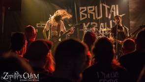 An dieser Stelle muss ich noch einmal Brutal Kraut meinen Dank aussprechen, die so dermaßen kurzfristig für unsere krankheitsbedingt abwesenden Vogtländischen Freunde einsprangen, dass die meisten Besucher gar nicht wussten, wer da nun die Bühne rocken wollte. Die auf ein Trio geschrumpfte Thrash/Deather aus Oranienburg machten ihrem vorher von vielen Seiten positiv bewerteten Ruf alle Ehre und gaben ebenfalls Kniegas und gefielen mit ihrem schönen Mix aus diversen hartwursttechnischen Stilen, der vom Publikum ebenfalls mehr als gut angenommen wurde.