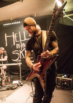 Warum die schon recht zahlreich Anwesenden solch eine Distanz zur Bühne wahren, wird mir auf immer und ewig ein nicht zu lösendes Rätsel bleiben, denn unser Opener Hell in the skies mit unserem Redaktions-Lars an der Sechssaitigen, legte los wie die professionellen Brandbekämpfer und rockten mit ihrem herrlich eingängigen, Zack Wylde orientierten Stoner Rock die Bühne vortrefflich. Gleich zu Beginn wurde ebenfalls deutlich, dass Kollege Eggi einen glasklaren Sound fabrizierte, der den ganzen Abend anhalten sollte und dem fetten HITS Sound die notwendige Wucht verlieh.