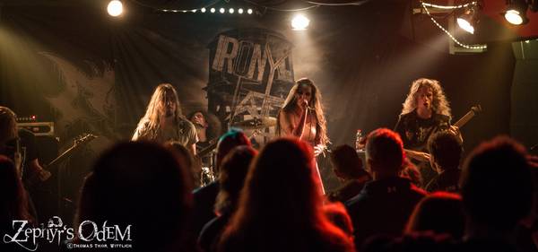 Natürlich hatten Irony of Fate als erste internationale Band beim ZOFF einen kleinen Exotenbonus inne, den sich die Schweizer dann auf der Bühne aber zu keinem Zeitpunkt anmerken ließen und eine Performance aufs Parkett zauberte, die ich bis dahin beim ZOFF noch nicht erleben durfte. Der peitschende Melo Death der Eidgenossen wurde von der bärenstarken Bühnenpräsenz von Frontfrau Cveti getragen, die sich vollkommen verausgabte, den rechten Fuß permanent auf dem Gaspedal hielt und Kolleginnen wie Britta Görtz oder Alissa White-Gluz ziemlich alt aussehen ließ. Die Haare der mehr als sympathischen Truppe waren unentwegt in Dauerrotation, die Gitarrenläufe von Raffael und Lars schnitten meterdicken Beton, Basser Tom und Drummer Gregor legten keinen Teppich, sondern vielmehr meterdicken Estrich, auf dem Irony of Fate ihren musikalischen Weg beschritten. Kollege Dennis von D:I:D: Events jedenfalls war mehr als begeistert und meinte: „Die spielen spätestens in 3 Jahren beim Party San“.